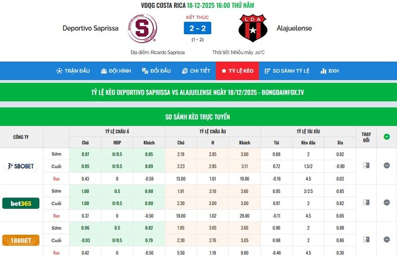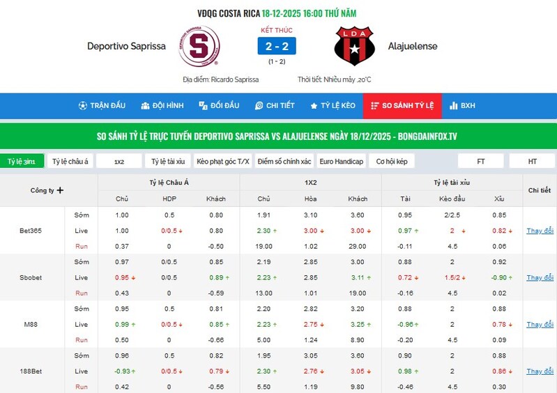 Một trận đấu có thể có nhiều tỷ lệ kèo khác nhau từ các nhà cái khác nhau, và việc biết cách so sánh sẽ giúp anh em tối ưu hóa cơ hội chiến thắng. Bóng Đá INFO giúp anh em theo dõi kèo từ các sàn cược hàng đầu trên thế giới như: