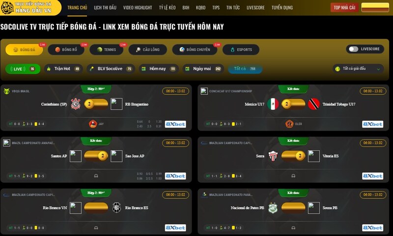 Ấn tượng đầu tiên của mình khi vào trực tiếp bóng đá Socolive TV là giao diện khá gọn gàng. Không rối mắt, không quá nhiều mục thừa. Những trận đấu đang diễn ra được đặt ở vị trí dễ thấy, lịch thi đấu sắp tới cũng hiển thị rõ ràng.