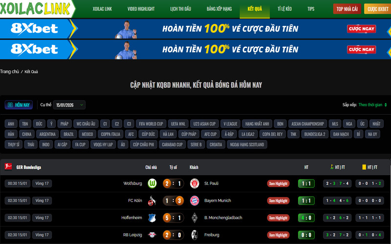 Xoilac Link hiện đang là một trong những trang web bóng đá trực tuyến được đông đảo người dùng tin tưởng và truy cập mỗi ngày. Khi đến với nền tảng này, người hâm mộ có thể dễ dàng tìm thấy nhiều chuyên mục quan trọng như xem trực tiếp bóng đá, lịch thi đấu, bảng xếp hạng và đặc biệt là chuyên mục kết quả bóng đá.